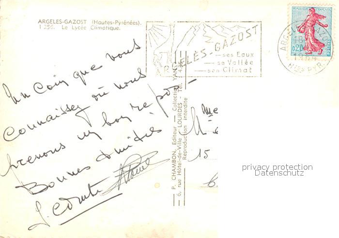 13544395 carte postale Argeles-Gazost Le Lycee Climatique postalisch gelaufen Erhaltung siehe scans [KathaD81] KatCode: 11170065165025