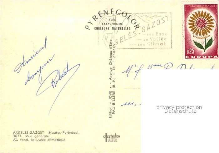 13590168 Argeles-Gazost Vue generale Au fond le Lycee climatique postalisch gelaufen Erhaltung siehe scans [WerneD78] carte postale Wern Katcode 11170065165025