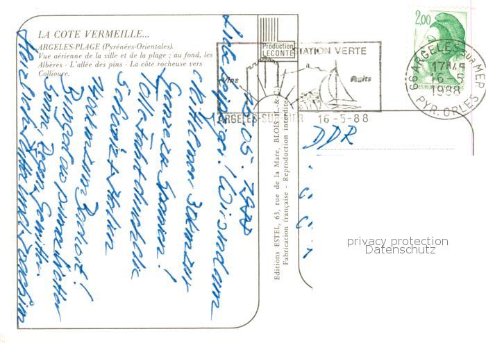 13789117 Argeles-Plage 66 Pyrenees-Orientales Vue aerienne de la ville et de la plage les Alberes L’allee des pins La cote rocheuse postalisch gelaufen Erhaltung siehe scans [WerneD78] carte postale Wern Katcode 11170066166008
