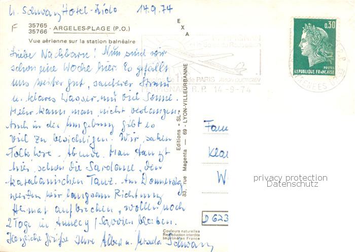13784905 Argeles-Plage 66 Pyrenees-Orientales Vue aerienne sur la station balneaire postalisch gelaufen Erhaltung siehe scans [FriedD77] carte postale Frie Katcode 11170066166008