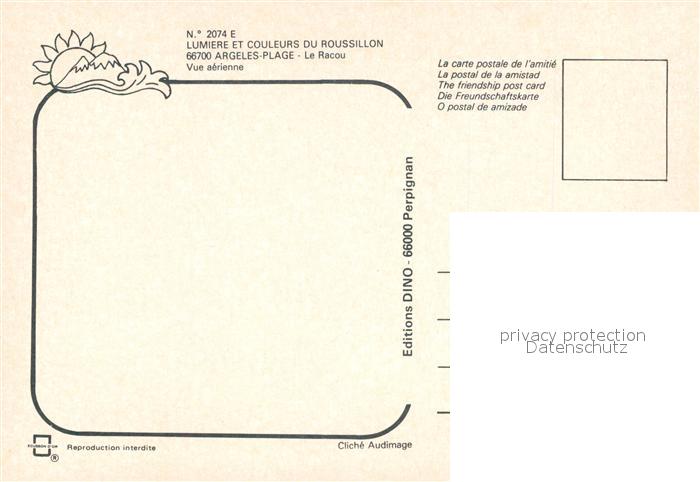 13330279 Argeles Plage Le Racou Vue aerienne postalisch nicht gelaufen Erhaltung siehe scans [WerneD78] KatCode: 11170066166008