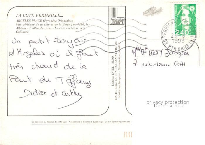 13258411 carte postale Argeles Plage Vue aerienne de la ville et de la plage postalisch gelaufen Erhaltung siehe scans [WerneD78] KatCode: 11170066166008