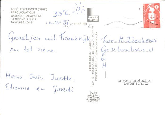 12038153 carte postale Argeles-sur-Mer Camping la Sirene postalisch gelaufen Erhaltung siehe scans KatCode: 11170066166008