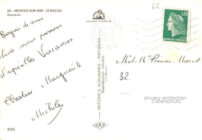 13525608 carte postale Argeles-sur-Mer Divers aspects Plage Montagnes postalisch gelaufen Erhaltung siehe scans [FriedD77] KatCode: 11170066166008