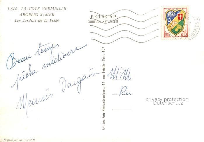 13582079 Argeles-sur-Mer Jardins de la plage postalisch gelaufen Erhaltung siehe scans [FriedD77] carte postale Frie Katcode 11170066166008