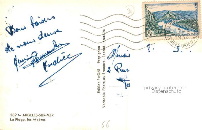 13483387 carte postale Argeles-sur-Mer La Plage et les Albéres Pyrénées postalisch gelaufen Erhaltung siehe scans [FriedD77] KatCode: 11170066166008