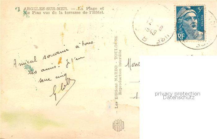 13534848 carte postale Argeles-sur-Mer La Plage et les Pins vus de la terrasse de l Hotel postalisch gelaufen Erhaltung siehe scans [WerneD78] KatCode: 11170066166008