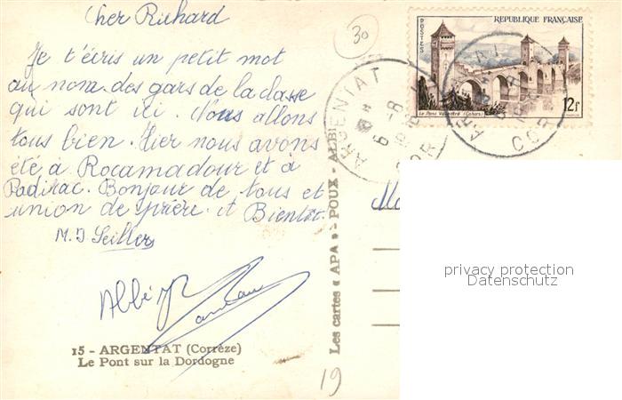 13497469 carte postale Argentat Pont sur la Dordogne postalisch gelaufen Erhaltung siehe scans [FriedD77] KatCode: 11170019219010