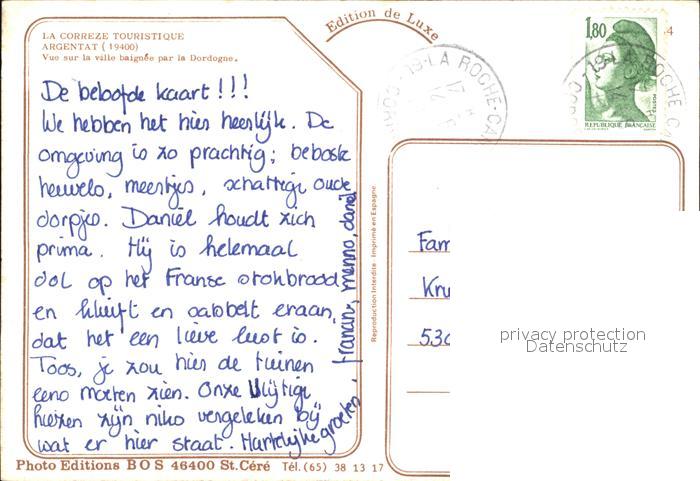 12501149 carte postale Argentat Ville baignee par la Dordogne postalisch gelaufen Erhaltung siehe scans KatCode: 11170019219010