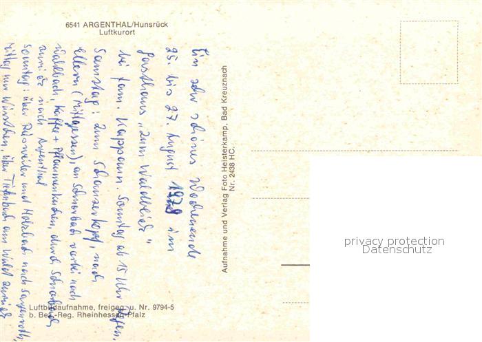 72904602 Argenthal Luftkurort Fliegeraufnahme postalisch nicht gelaufen Erhaltung siehe scans [FriedD77] KatCode: 11110007140003