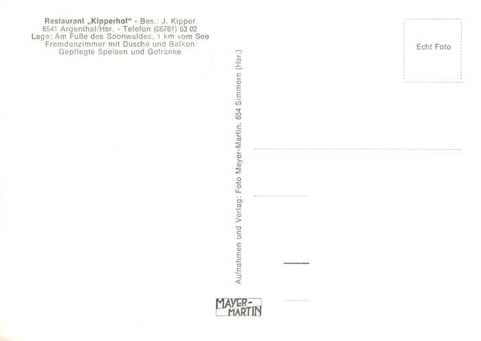73869721 Argenthal Restaurant Kipperhot Uferpartie am See Soonwald postalisch nicht gelaufen Erhaltung siehe scans [FriedD77] KatCode: 11110007140003
