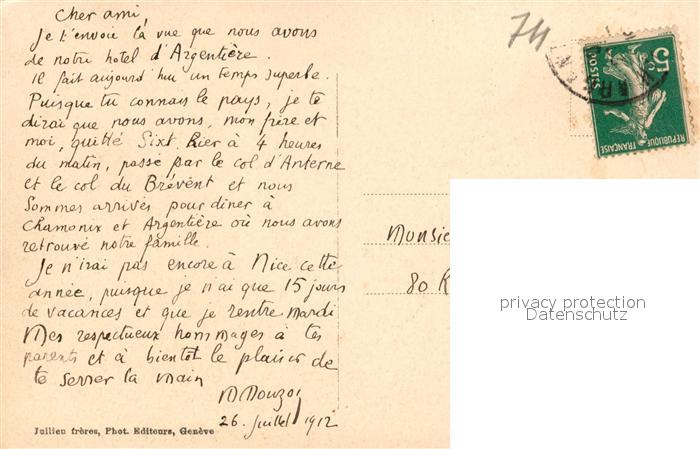 13575468 carte postale Argentiere Haute-Savoie et le Mont Blanc postalisch gelaufen Erhaltung siehe scans [WerneD78] KatCode: 11170074274056