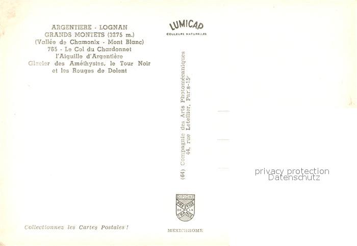 13572969 Argentiere Haute-Savoie Grands Montets Le Col du Chardonnet l’Aiguille d’Argentiere Glacier des Amethystes postalisch nicht gelaufen Erhaltung siehe scans [WerneD78] KatCode: 11170074274056
