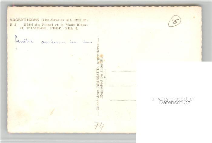 13489850 Argentiere Haute-Savoie Hotel du Planet Mont Blanc Alpes Francaises postalisch nicht gelaufen Erhaltung siehe scans [FriedD77] KatCode: 11170074274056