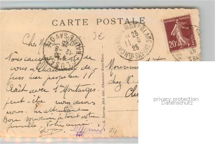 13489503 carte postale Argentiere Haute-Savoie Panorama et le Mont Blanc Alpes Francaises postalisch gelaufen Erhaltung siehe scans [FriedD77] KatCode: 11170074274056