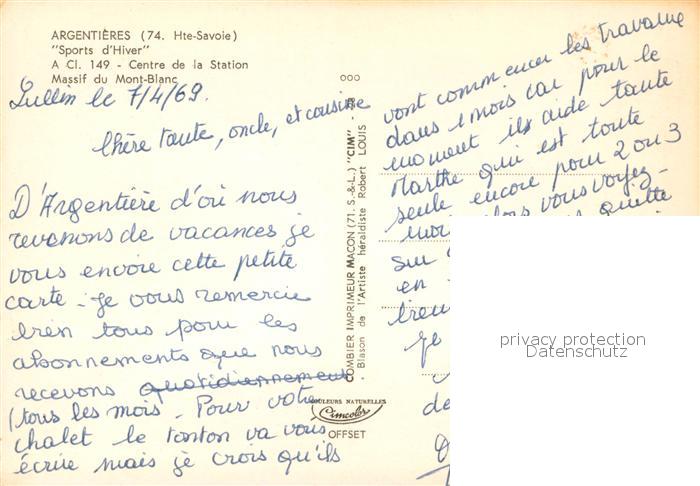 13640237 Argentieres Seine-et-Marne Centre de la Station de Sports d hiver Massif du Mont Blanc Alpes postalisch nicht gelaufen Erhaltung siehe scans [FriedD77] Frie Katcode 11170077277007