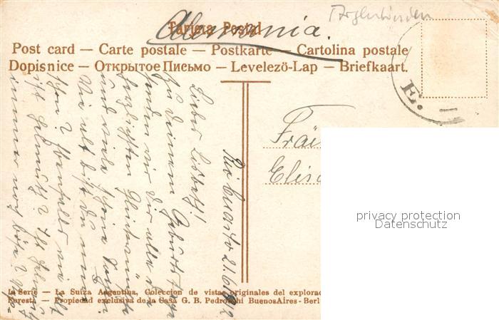 alte Postkarte Argentinien Lago Frio vista del Tronador Mountains Rio Negro postalisch gelaufen Erhaltung siehe scans [FriedD77]