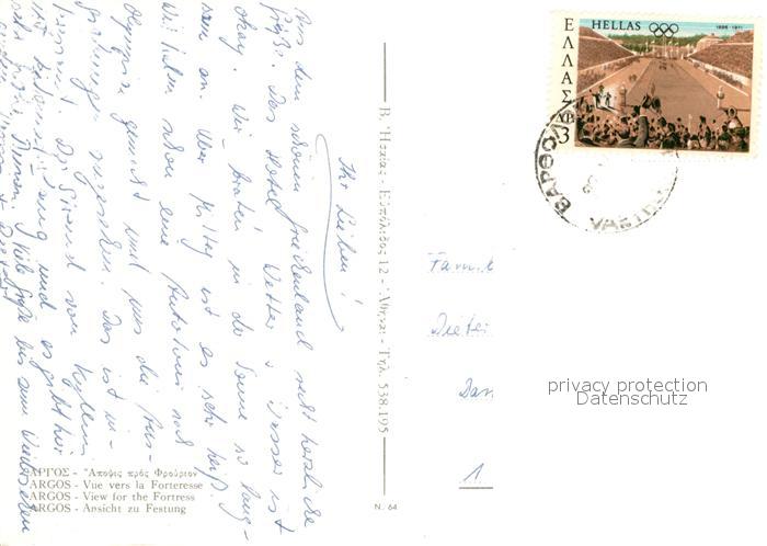 72930619 old postcard Argos Festung postalisch gelaufen Erhaltung siehe scans [NatalD47] KatCode: 14140160000000