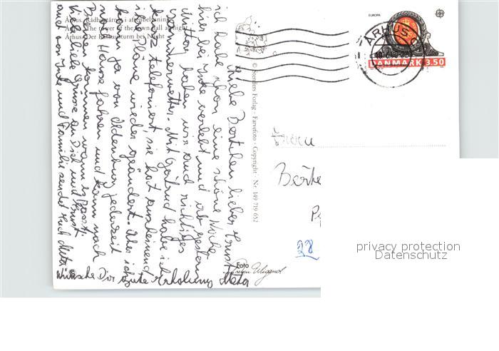 old postcard Arhus Rathausturm bei Nacht postalisch gelaufen Erhaltung siehe scans