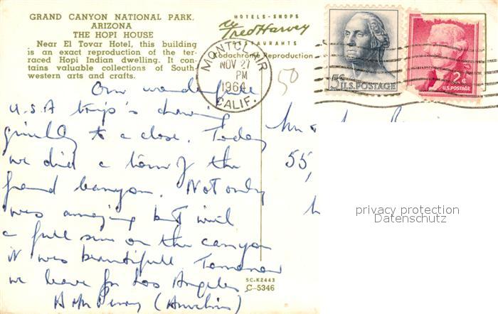73127761 old postcard Arizona US-State Grand Canyon National Park Hopie House postalisch gelaufen Erhaltung siehe scans [KathaD81] KatCode: 14140470000000