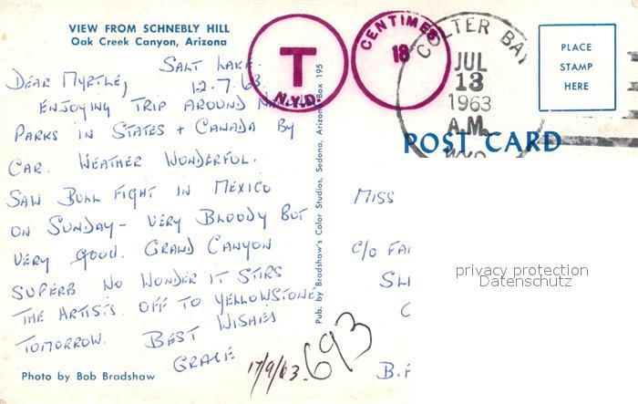 73061579 old postcard Arizona US-State Oak Creek Canyon Panorama postalisch gelaufen Erhaltung siehe scans [WerneD78] KatCode: 14140470000000