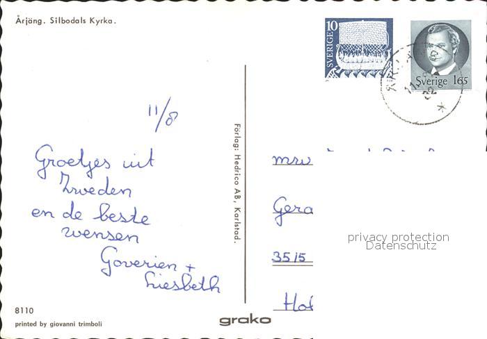 old postcard Arjaeng Silbodals Kyrka postalisch gelaufen Erhaltung siehe scans