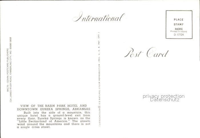 72131239 Arkansas City Arkansas Eureka Springs Park-Hotel postalisch nicht gelaufen Erhaltung siehe scans KatCode: 14140040000000