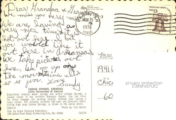 72239958 old postcard Arkansas City Arkansas Eureka Springs postalisch gelaufen Erhaltung siehe scans KatCode: 14140040000000