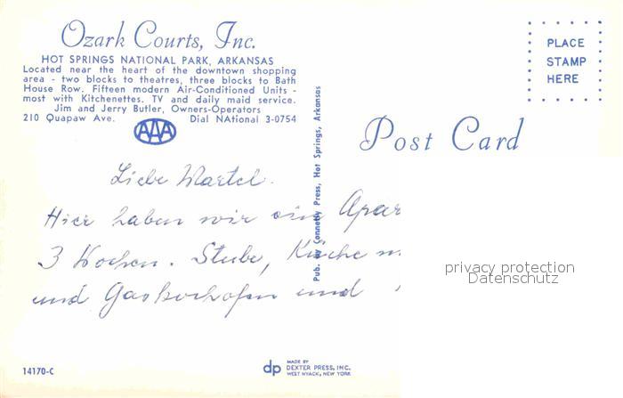 72876364 Arkansas City Arkansas Ozark Courts postalisch nicht gelaufen Erhaltung siehe scans [AndreD76] KatCode: 14140040000000