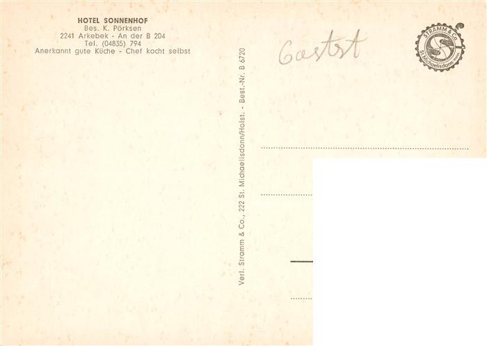 73902194 Arkebek Hotel Sonnenhof Gastraeume postalisch nicht gelaufen Erhaltung siehe scans [WerneD78] KatCode: 11110001051002