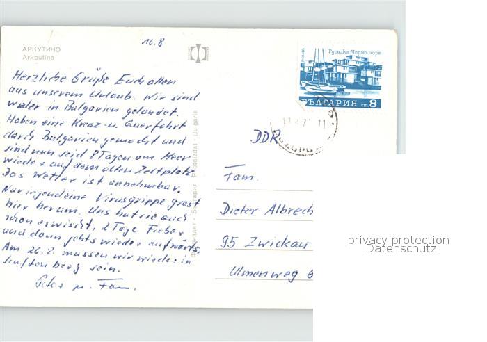 old postcard Arkoutino Arkutino Strand postalisch gelaufen Erhaltung siehe scans