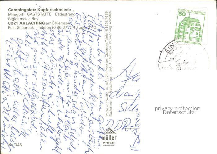 72114078 alte Postkarte Arlaching Camping Kupferschmiede Minigolf postalisch gelaufen Erhaltung siehe scans KatCode: 11110009189114