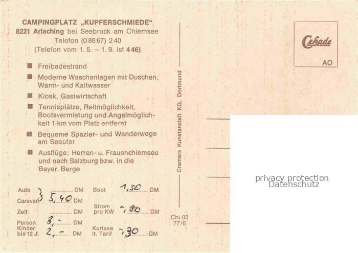 74026271 Arlaching Campingplatz Kupferschmiede am Chiemsee Luftaufnahme Gasthaus postalisch nicht gelaufen Erhaltung siehe scans [FriedD77] KatCode: 11110009189114