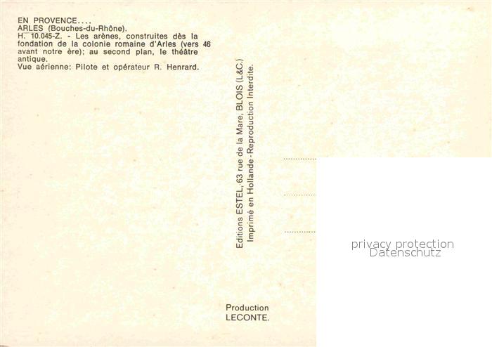 12620720 Arles Bouches-du-Rhone Fliegeraufnahme Les Arenes Theatre antique postalisch nicht gelaufen Erhaltung siehe scans [LiesaD40] KatCode: 11170013213004