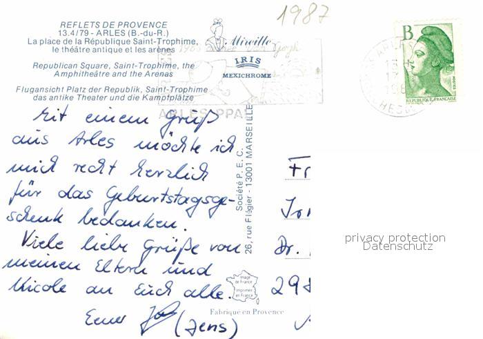 12889508 carte postale Arles Bouches-du-Rhone Fliegeraufnahme Place de la Republique Saint Trophime postalisch gelaufen Erhaltung siehe scans [LiesaD40] KatCode: 11170013213004