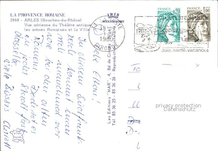 12592464 carte postale Arles Bouches-du-Rhone Fliegeraufnahme Theater postalisch gelaufen Erhaltung siehe scans [AndreD76] KatCode: 11170013213004