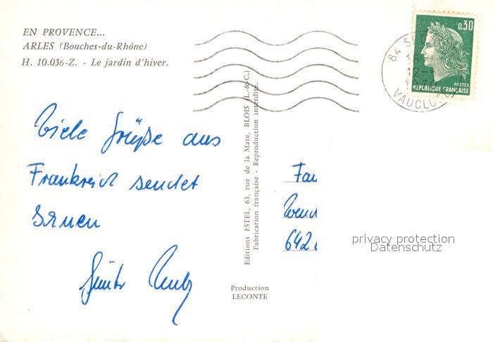 13040722 carte postale Arles Bouches-du-Rhone Jardin hiver postalisch gelaufen Erhaltung siehe scans [NatalD47] KatCode: 11170013213004