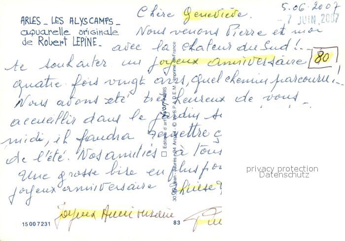 13325248 Arles Bouches-du-Rhone Les Alyscamps aquarelle originale de Robert Lepine Dessin Künstlerkarte KatCode 11170013213004