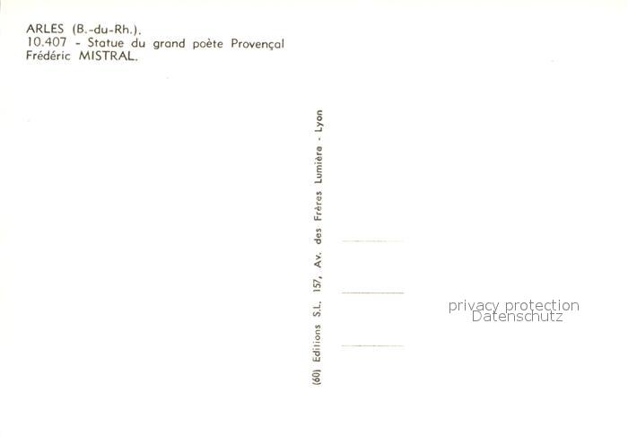 12945710 Arles Bouches-du-Rhone Statue du grand poete Provencal Frederic Mistral Monument postalisch nicht gelaufen Erhaltung siehe scans [FriedD77] KatCode: 11170013213004