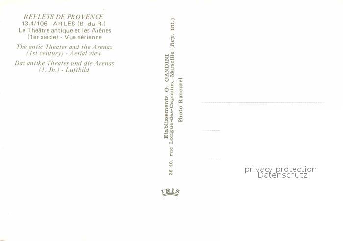 12840094 Arles Bouches-du-Rhone Theatre antique et les Arles Vue aerienne postalisch nicht gelaufen Erhaltung siehe scans [WerneD78] KatCode: 11170013213004