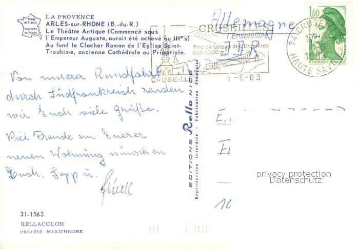 13219441 carte postale Arles Bouches-du-Rhone Theatre Antique Ruines postalisch gelaufen Erhaltung siehe scans [FriedD77] KatCode: 11170013213004