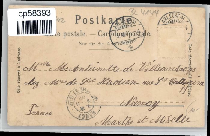 10718004 alte Postkarte Arlesheim Schloss Birseck Cempenfluh postalisch gelaufen KatCode: 11470040080610