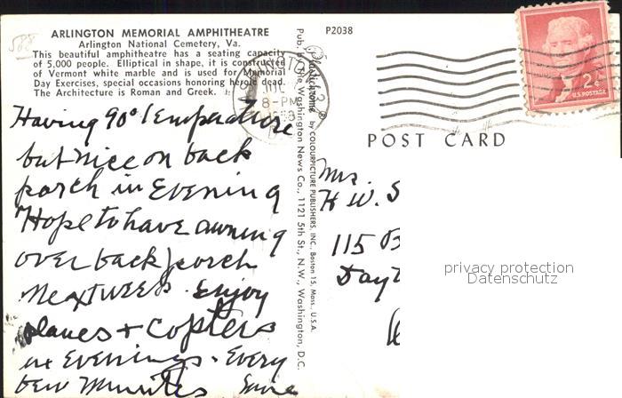 72017592 old postcard Arlington Virginia Arlington Memorial Amphitheatre postalisch gelaufen Erhaltung siehe scans KatCode: 14140490000000