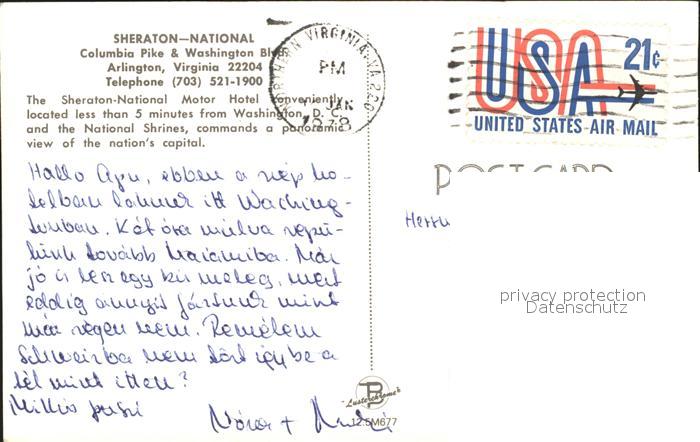 11693273 old postcard Arlington Virginia Sheraton National Hotel postalisch gelaufen KatCode: 14140490000000