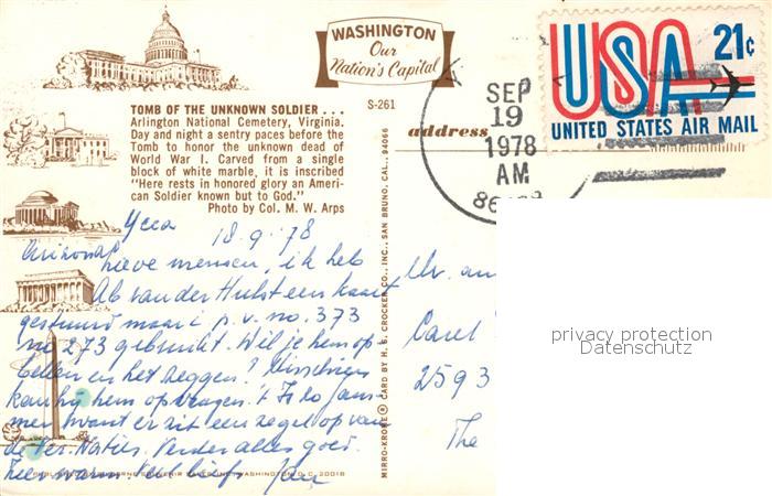 73131643 old postcard Arlington Virginia Tomb Unknown Soldier postalisch gelaufen Erhaltung siehe scans [KathaD81] KatCode: 14140490000000