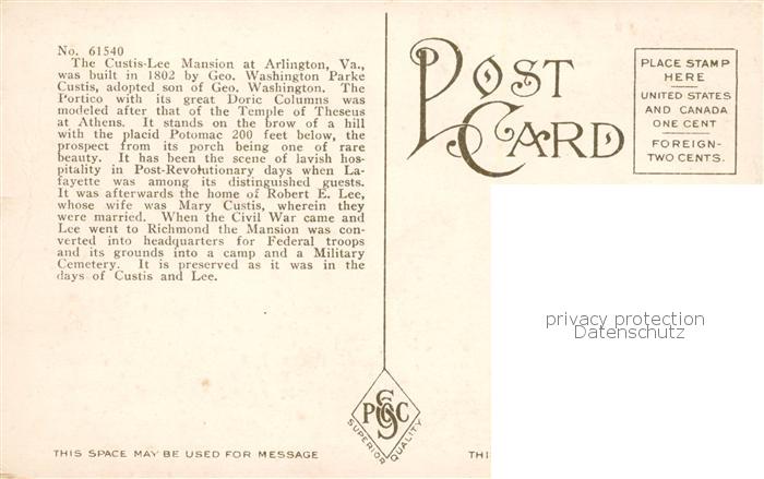 73820351 Arlington Virginia USA Custis Lee Mansion postalisch nicht gelaufen Erhaltung siehe scans [FriedD77] KatCode: 14140490000000