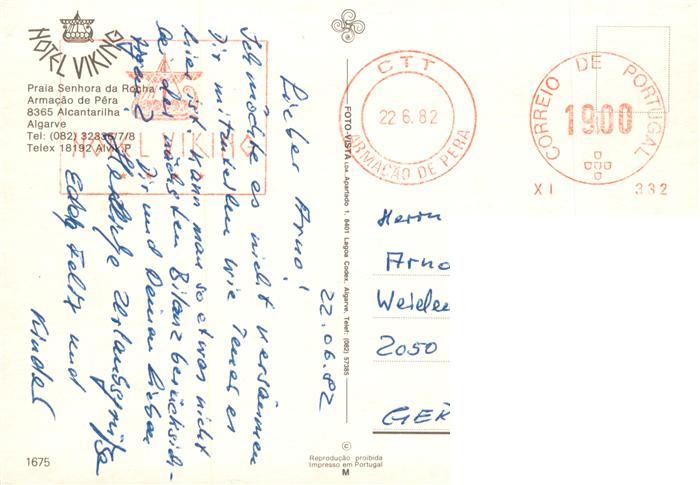 73907446 old postcard Armacao de Pera Algarve PT Praia Senhora da Rocha Armacao de Pera Fliegeraufnahme postalisch gelaufen Erhaltung siehe scans [WerneD78] KatCode: 11420