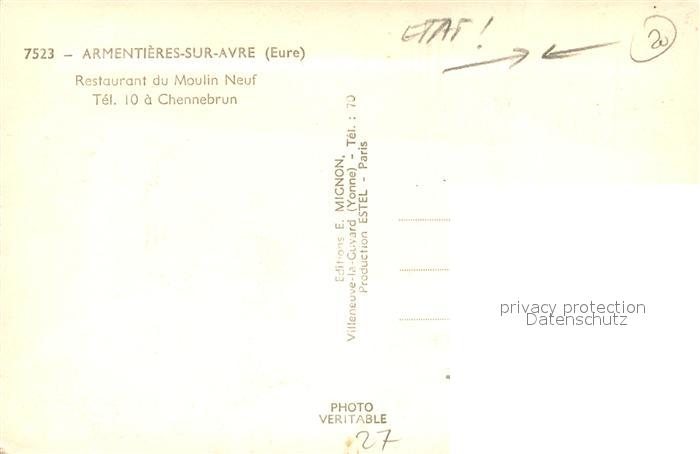 13499703 Armentieres-sur-Avre Restaurant du Moulin Neuf postalisch nicht gelaufen Erhaltung siehe scans [FriedD77] KatCode: 11170027327019