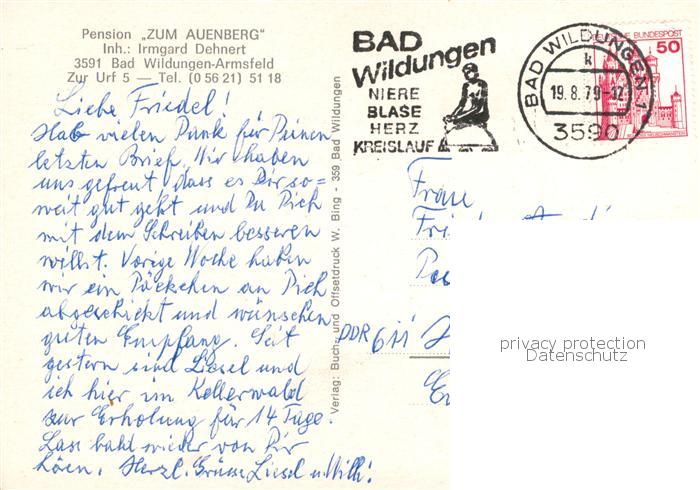 73867036 alte Postkarte Armsfeld Pension Zum Auenberg Gaststube postalisch gelaufen Erhaltung siehe scans [WerneD78] KatCode: 11110006635003