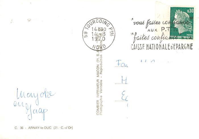 13947877 Arnay-le-Duc 21 Cote-d Or Eglise Vieilles Tours Centre Pont Place Château postalisch gelaufen Erhaltung siehe scans [FriedD77] carte postale Frie Katcode 11170021121023